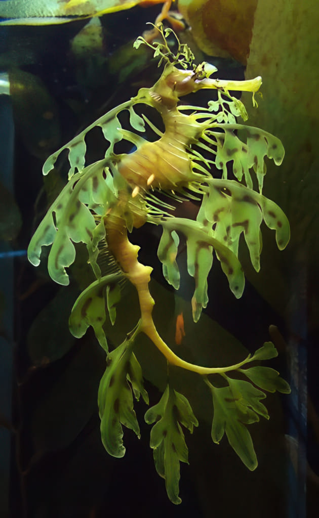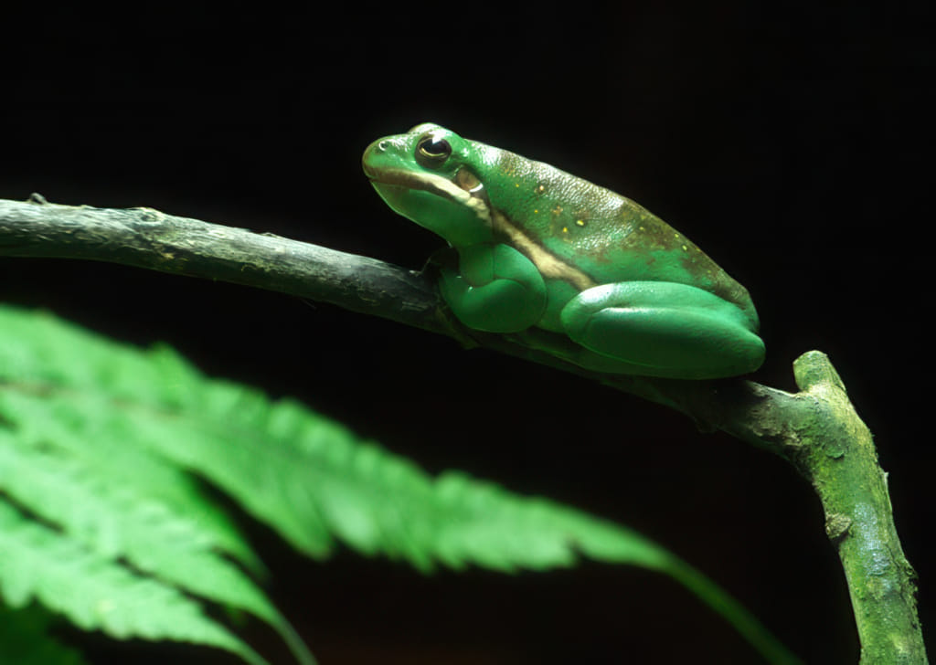 Neben den riesigen Wassertanks über mehrere Stockwerke (!) gibt es auch kleinere Terrarien. Dieser grüne Frosch hat dort seine Heimat: