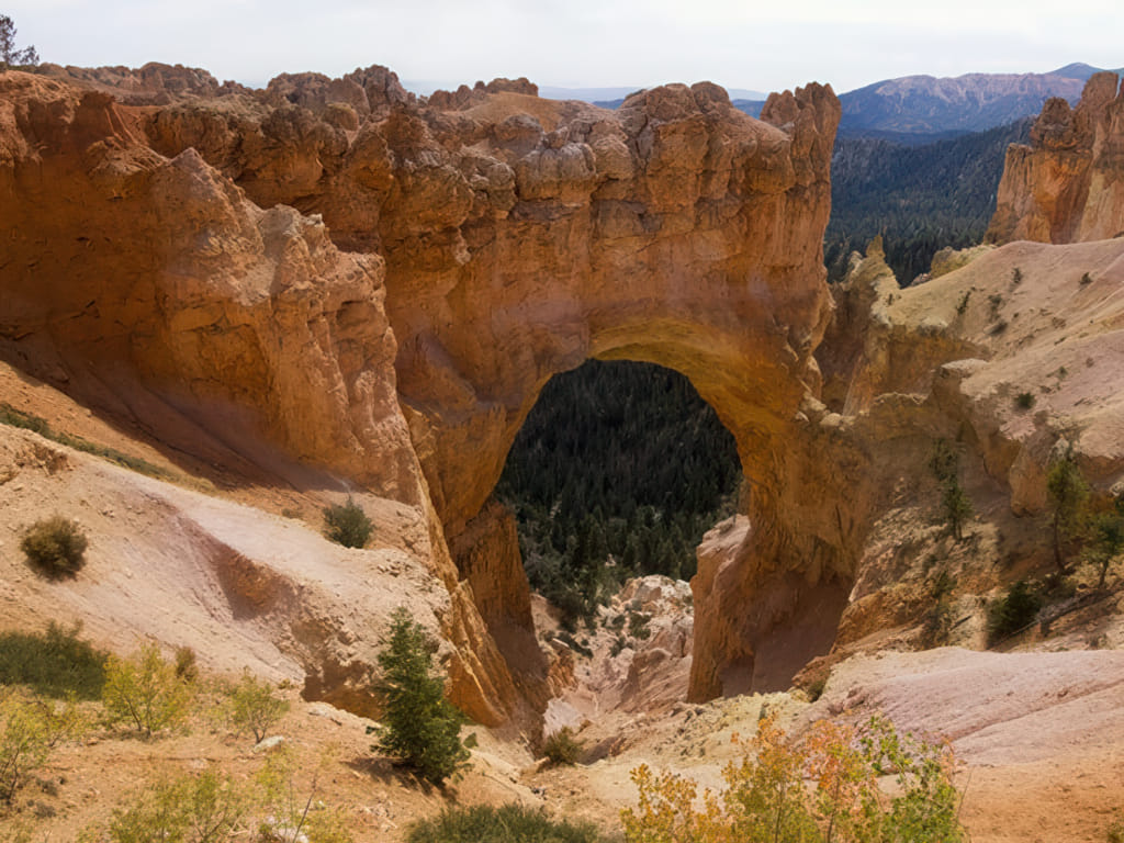 Beim Eingang vom Bryce NP waren wieder ein paar Wolken, aber am Scenic Drive waren sie bald wieder verschwunden. Im Prinzip gibt es nicht viel Neues; man fährt von Aussichtspunkt zu Aussichtspunkt und wundert sich, was die Natur nicht alles erschaffen kann. Im folgenden die Natural Bridge: