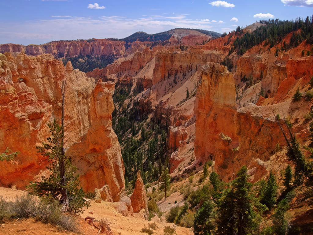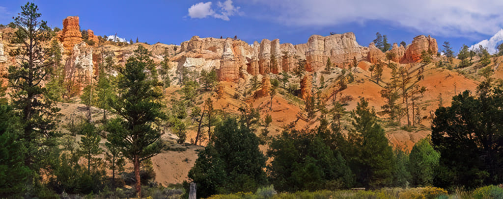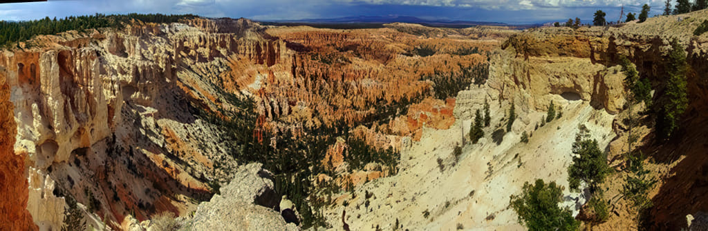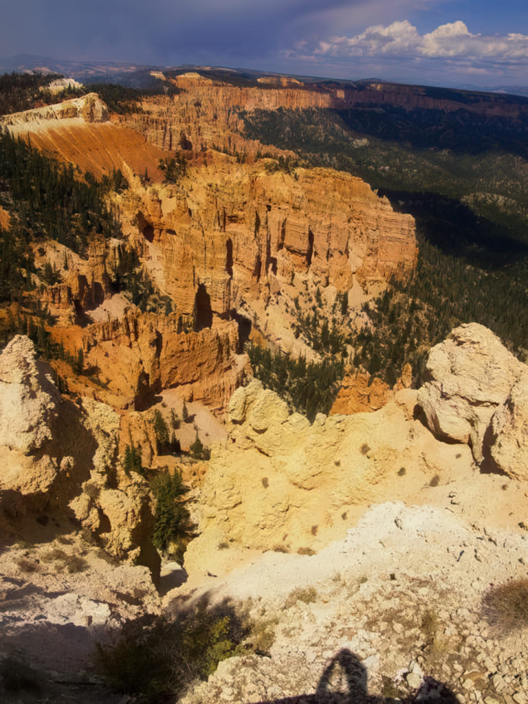Bryce besteht aus einer sehr langen Klippe, wo die wunderschönen roten und weißen Felsen ausgewaschen wurden. Hier ein Blick entlang der Klippe: