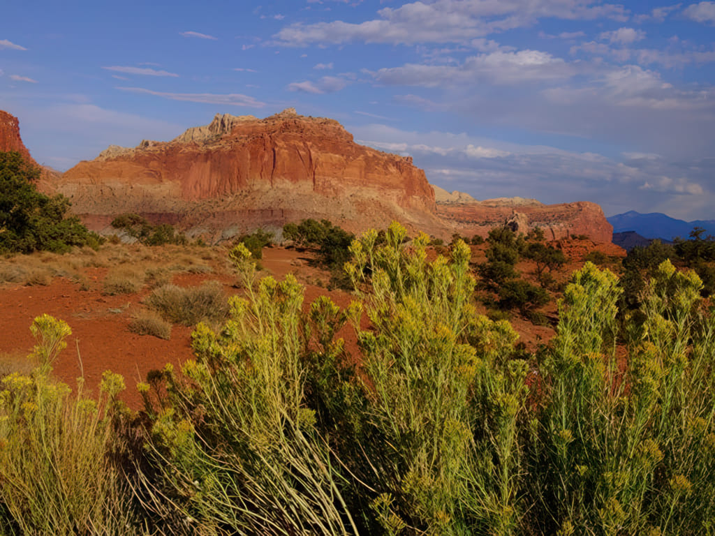 Nach langer Fahrt ist dann der Capitol Reef NP das Ziel. Bei Abendlicht wirkt alles noch einmal so schön: