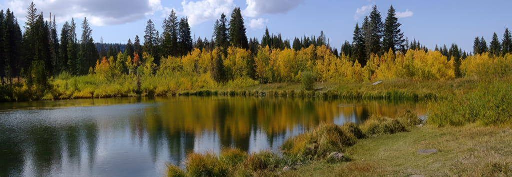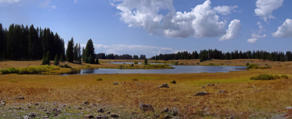 Der See des Grauens. Genau hier (genauer am Campingplatz links vom See) haben wir uns vor zwei Jahren alles abgefroren. So friedlich und schön liegt er da. Kaum zu vermuten wie unglaublich kalt es dort werden kann (wenig überraschend finden sich dort genug gelbe Bäume):