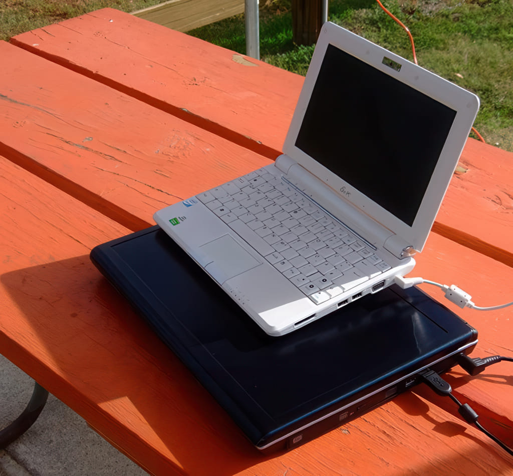 Drum wurde mir eingeredet, daß ein eigener USA-Notebook mit praktisch nix drauf die Lösung wäre. Nur was sollte man da nehmen, das a) billig und b) erhältlich war? Schnell fand sich die neue Netbook-Serie als passend. Nur der MSI war nicht lieferbar und der Asus 9xx unbrauchbar. Also habe ich angefangen, von dem Notebook meiner Mutter alles runterzulöschen. Und gerade wie ich damit fertig war, kam der Asus 1000H raus. Angekündigt war er schon seit Juni oder so, nur lieferbar war er nie. Nicht einmal eine Woche vor meiner Abfahrt, hatte ihn Amazon plötzlich LAGERND. Also habe ich ihn bestellt und es scheint so, als hätte ich einen der ersten weißen Asus 1000H in Österreich. Er kam 2 Tage vor der Abreise an, viel Zeit zum Installieren blieb da nicht.