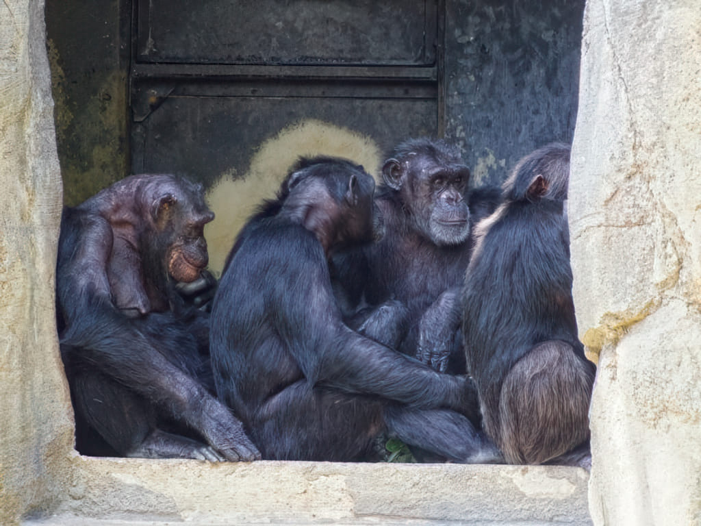 Die Schimpansen haben schon ein sehr schönes modernes Heim. Trotzdem kuscheln sie sich freiwillig in einer Höhle zusammen: