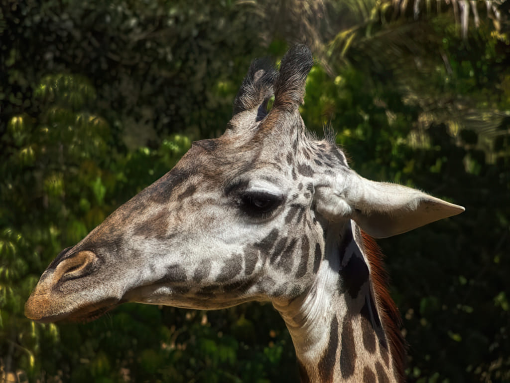 Giraffen machen selbst beim Betteln ein hoheitsvolles Gesicht. Dieses Exemplar ist nicht nur besonders hoheitsvoll, sondern auch besonders fleißig beim Betteln: