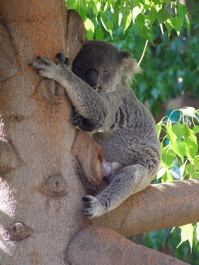In ‘Australien’ geht es recht nett zu: Die Koalas können im Freien auf echten Bäumen hocken. Und auch fest schlafen.