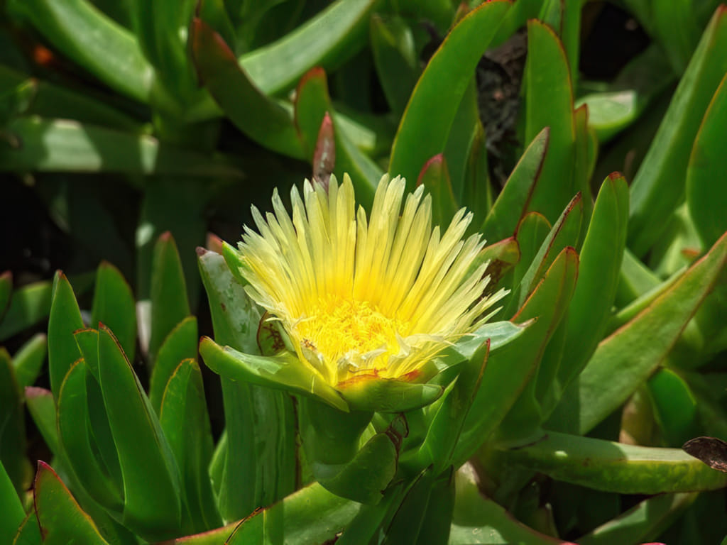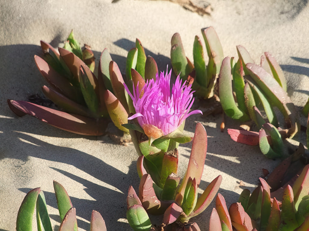 Am Strand wächst das gleiche seltsame Grünzeugs wie in Griechenland. Scheinbar gibt es nicht viel, das in salzigem Sand wächst. Hier blüht es aber auch noch hübsch: