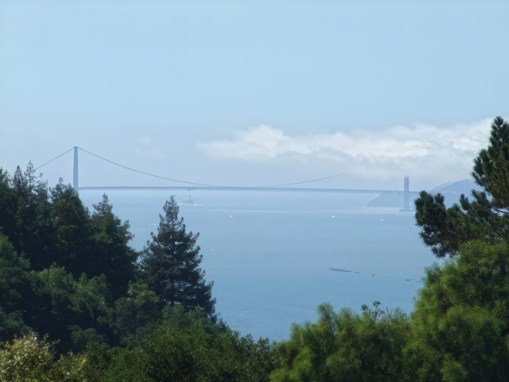 Vom Garten hat man einen hübschen Blick auf die Golden Gate Bridge. Man beachte, daß in der vergangenen Zeit der Nebel deutlich zurückgegangen ist. Schade, zu spät für mich: