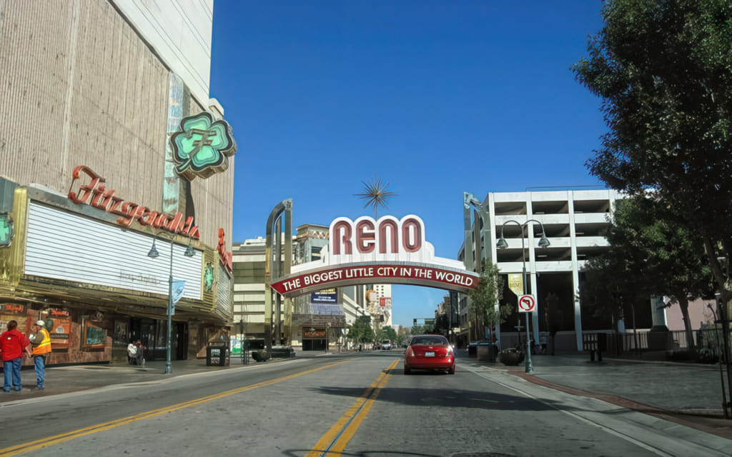 Das Hotelzimmer war schnell geräumt und die Fahrt durch Downtown konnte beginnen. Die Fahrt zur Downtown war schnell geschafft, lag doch unser Hotel an der Hauptstraße (Virginia Street). Downtown sind nur ein paar Blöcke und mehr als das berühmte Eingangstor war bei der Besichtigung nicht drinnen (weil mehr gab es da nicht):