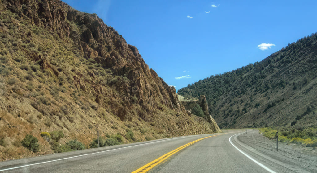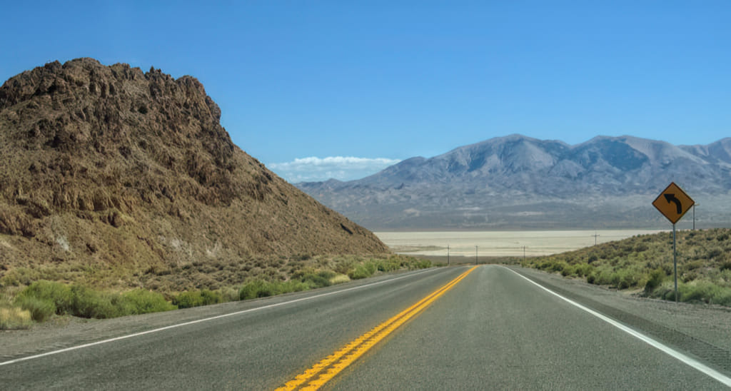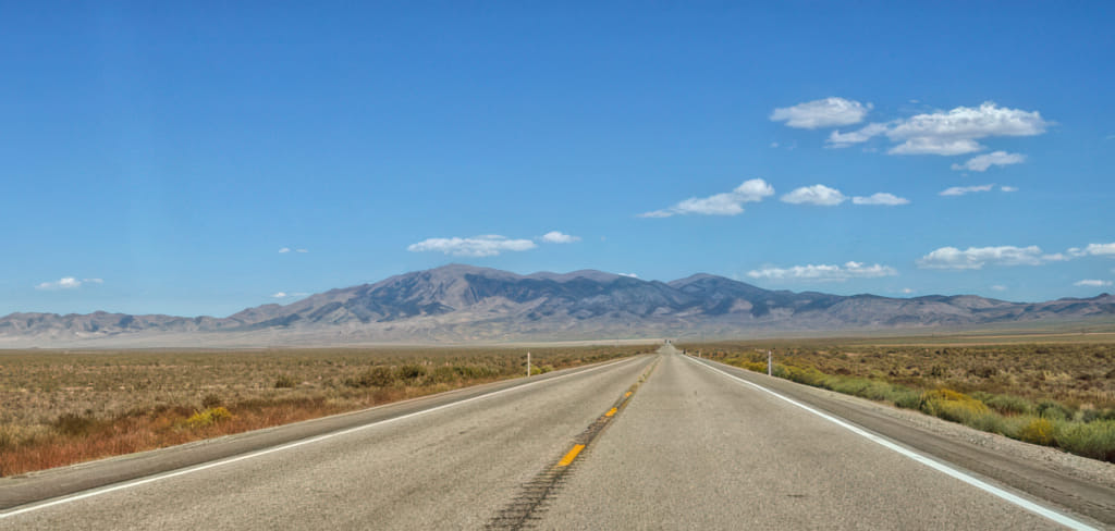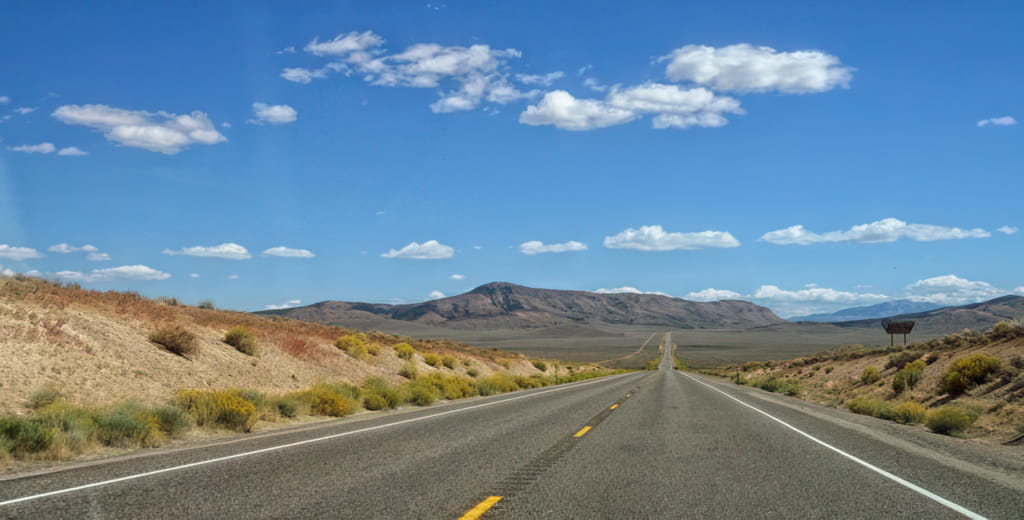 Die US#50 heißt in dem Bereich lonliest road und das hat schon seine Gründe. Auf 300 Meilen Fahrt kommen 3 Städte. Gleich am Anfang Fallon, dann laaaaange nix und dann noch einmal zwei winzige Städtchen. Das war es schon. Am besten beschreibt das TomTom: Nach 275mi rechts abbiegen. Und das auf einer Bundesstraße.