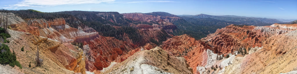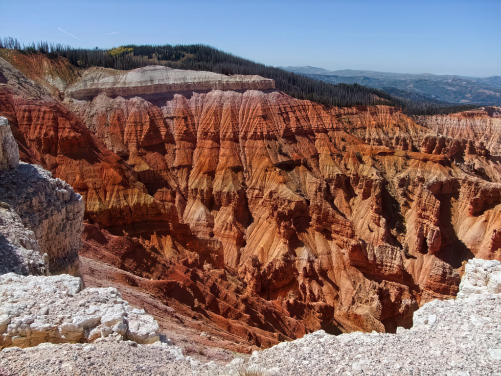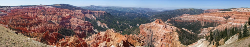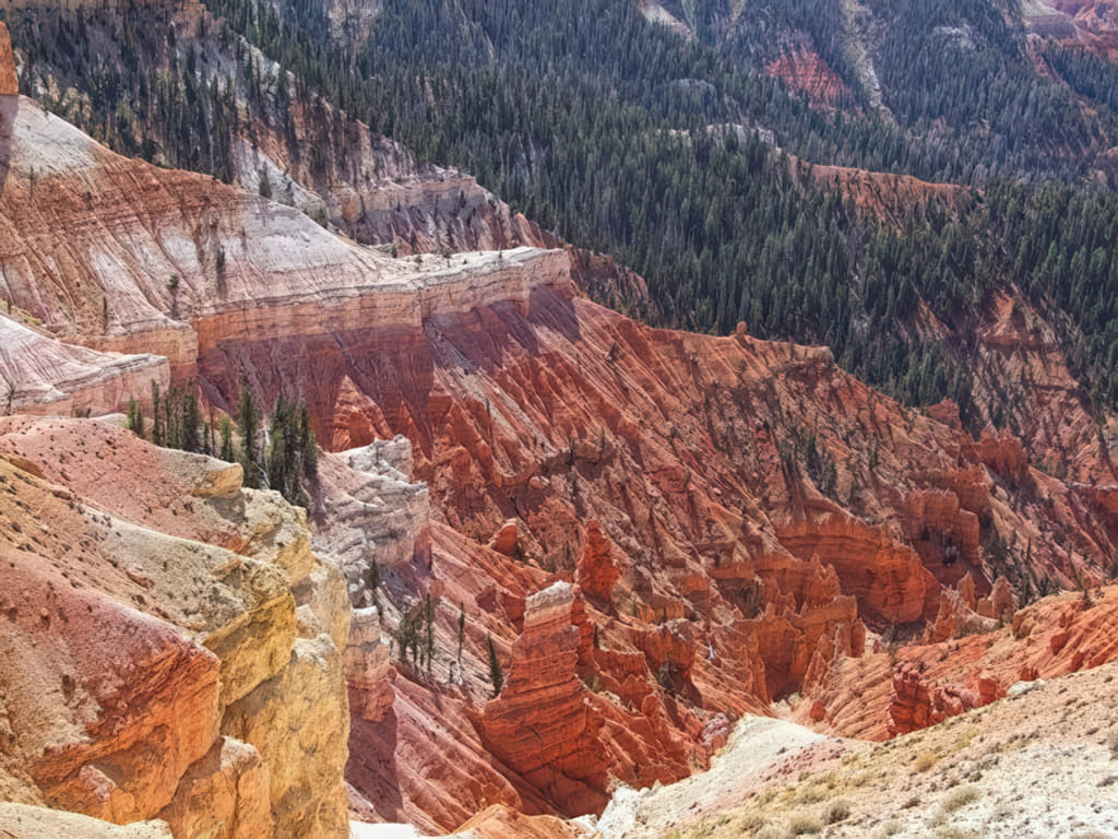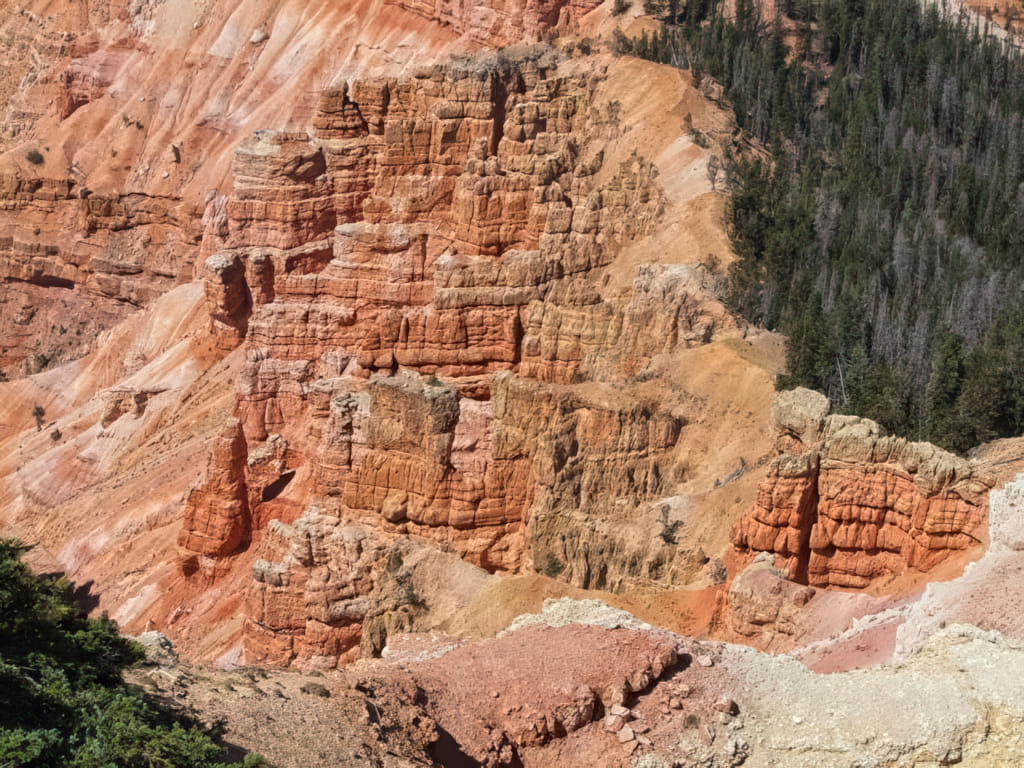 Cedar Breaks kann man sich als kleines Bryce vorstellen. Man hat ein großes rundes Abbruchgebiet, auf dem es sich wie in Bryce mit Formationen und Farben abspielt. Mit dem Scenic Drive fährt man ein sehr großes Stück am Rim entlang und kann immer wieder eindrucksvolle Aussichten genießen: