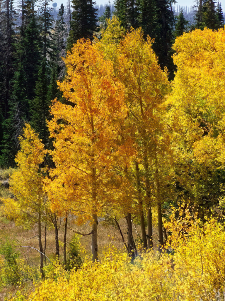 So hohe Berge und Salt Lake City in der Nähe ergibt doch fast zwangsläufig ein Skigebiet. Wir kamen daher von der Interstate durch das Brian Head Skigebiet. Da dürfte im Winter die Hölle los sein, quasi das St. Anton Utahs. Schon dort haben wir wieder die gelben Aspen getroffen: