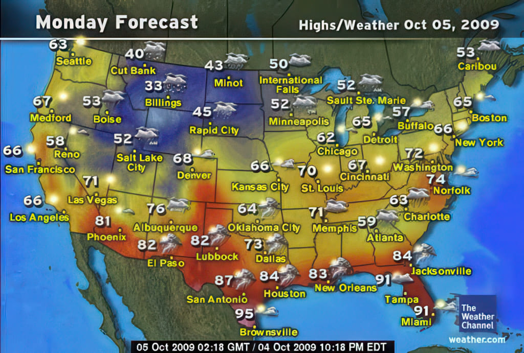 Kaum zu glauben, daß es so viel schlechtes Wetter auf einem Kontinent geben kann. Im Westen schneit es, daß es eine Freude ist. In Wyoming hatten sie bis zu 2ft Schnee! Das Tief über Texas hat sich auch ausgewachsen und überschüttet einmal mehr den ganzen Süden mit sehr viel Wasser und auch langsam sinkenden Temperaturen.