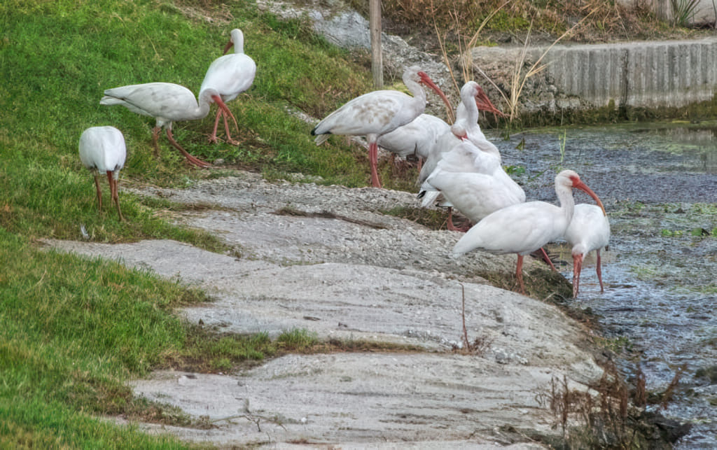 Die Haustiere eines Zelters sind doch sehr ortsabhängig (von herumlaufenden Hunden und Katzen einmal abgesehen). Waren es im Westen vorwiegend Jack Rabbits ist es in Florida ein wenig anders. Am Okeechobee Lake waren es dann schon Ibisse in rauhen Mengen: