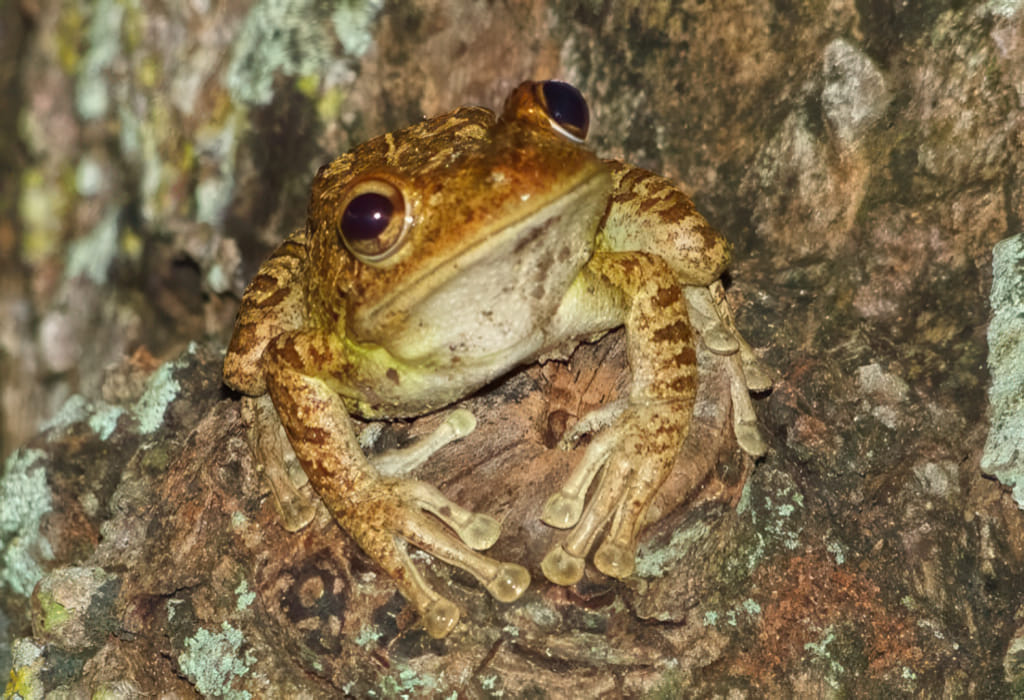 Hier in Miami sind die Kröten in großer Anzahl bekannt. Auf dem Weg zum Pool stehen und springen sie Spalier. Das ist eben normal. Heute Abend jedoch, raschelte es dauernd hinter dem Auto. Jedes mal schaue ich nach und nie sehe ich etwas. Bis ich einmal auf den nahen Baum schaue und siehe da, da gibt es noch andere Hüpfer. Lustige Füße haben die: