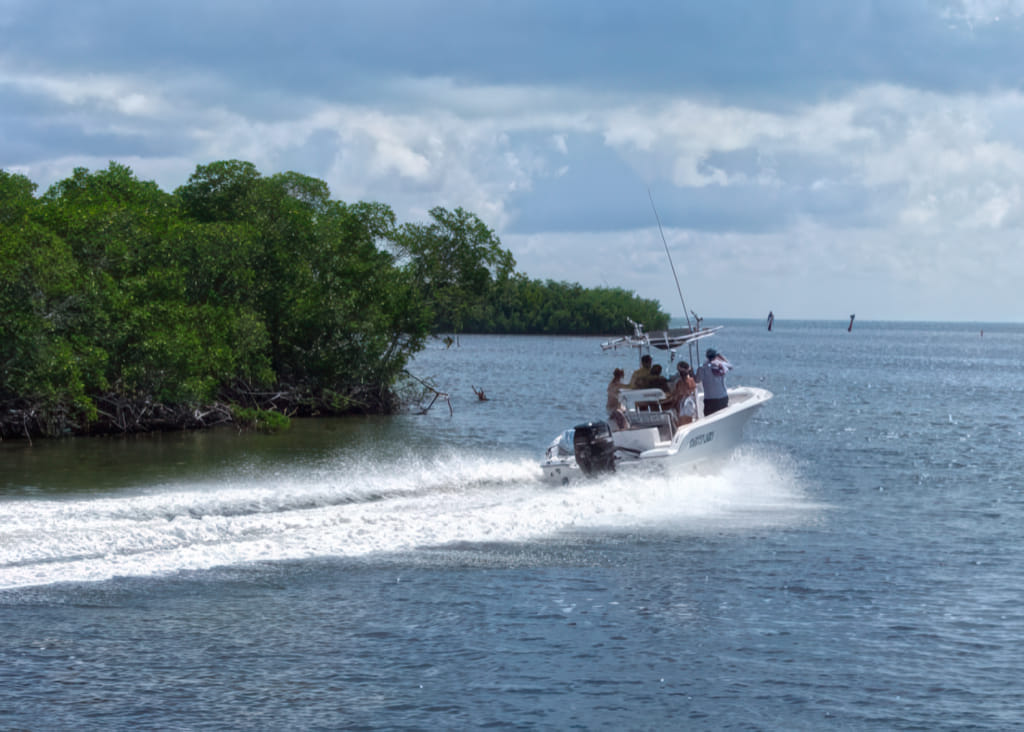 An der Ausfahrt überholen die kleinen Boote frech, denn die dürfen gasen so viel sie wollen: