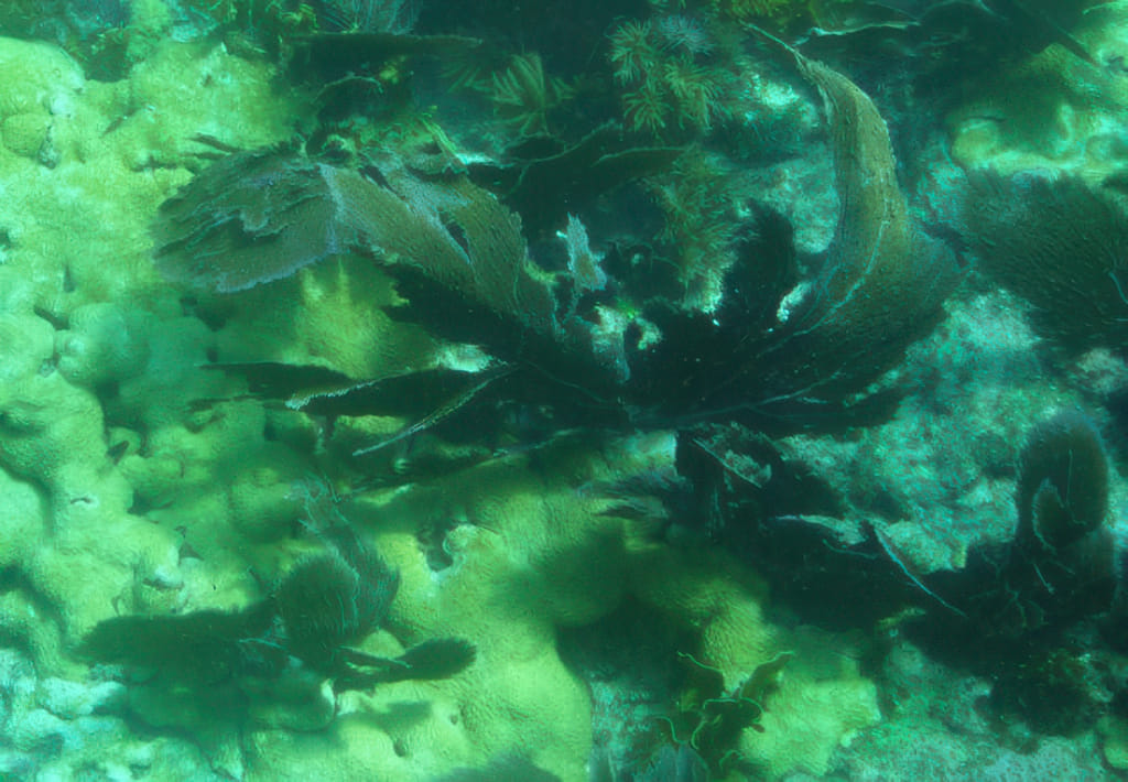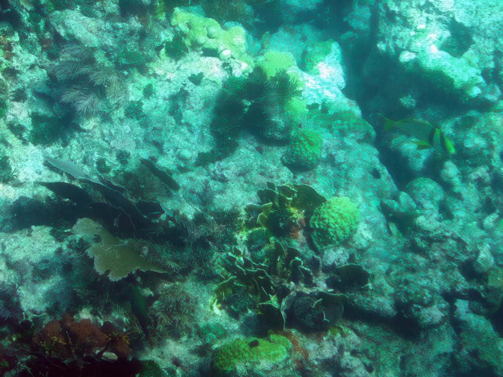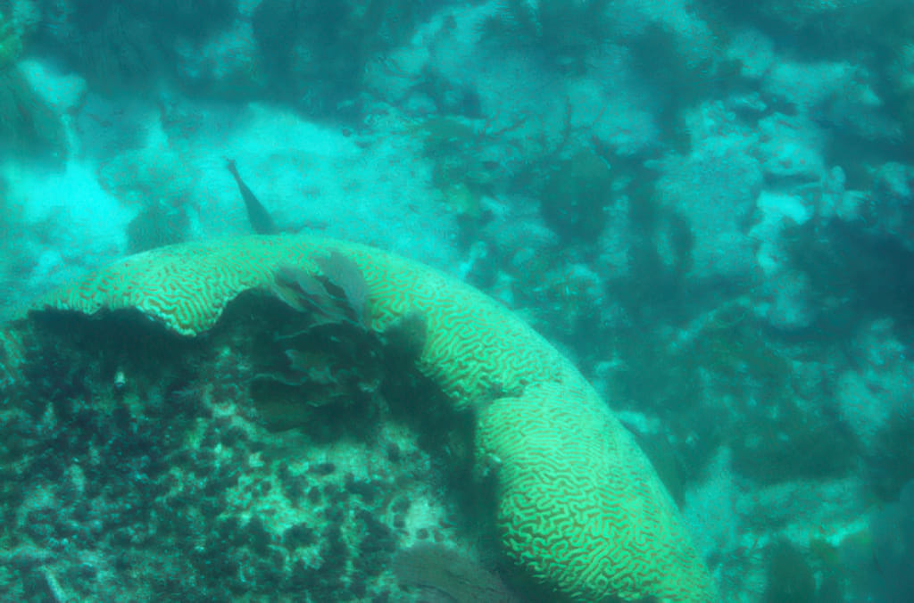und eine halbe Hirnkoralle. Ein Hirni hat vor einiger Zeit dort versucht zu ankern und hat dabei die Koralle geköpft. Das dauert wohl wieder, bis das zugewachsen ist: