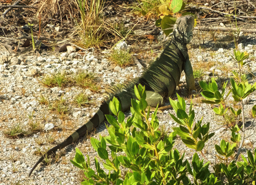 Am Weg nach draußen, liefen mir noch einige große Iguanos über den Weg; den hier habe ich noch mit der Kamera erwischt: