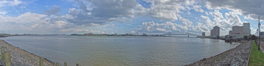 Die weitere Fahrt war irgendwie eine Kneippkur. Es war zwar nicht warm und kalt, aber es war sonnig und extrem naß. Nach sonnigen Abschnitten folgten weltuntergangsartige Gewitter. Die Gewitter wurden aber je weiter wir in den Westen kamen immer seltener, sodaß wir uns entschlossen haben den Umweg nach New Orleans zu wagen. Wir kamen auch bei strahlendem Sonnenschein durch die Stadt, aber ein unvorstellbarer, gigantischer Navigationsfehler des kartenführenden Beifahrers führte zu einem 1.5 stündigen Umweg (und dem dauerhaften Entzug der Kartenleseberechtigung). Da hatten uns auch wieder die Wolken gefunden; das Sonnenloch war offensichtlich begrenzt. Wie wir daher vom Parkplatz weggegangen sind, hat es schon ziemlich rumgewolkt. Rumwolken heißt aber in New Orleans nicht frieren, ganz im Gegenteil, bei 30 Grad und mehr wird es dann ziemlich schwül.