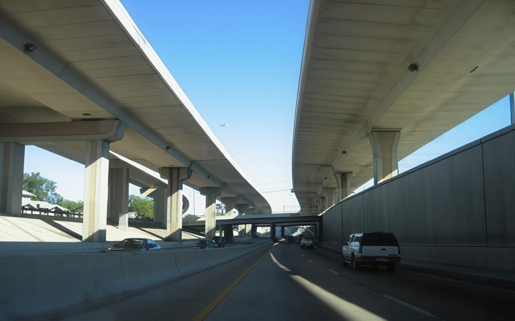 In Austin,TX hast auch upper und lower level auf der I35 von der UT bis zum alten Airport. Oben hast dazwischen keine Exits, d.h. da bist schneller durch.