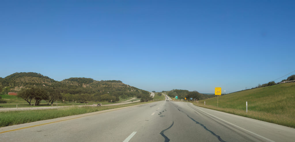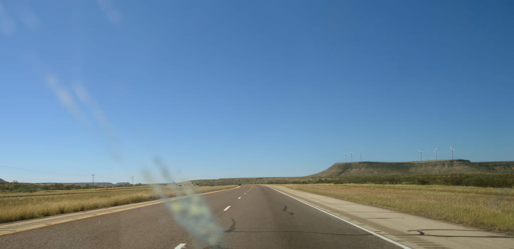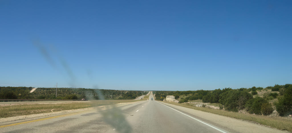 Die Strecke bis zur Westgrenze von Texas ist normalerweise ein Umgebungsschock: Von üppigem Grün in die trockene Wüste. Zunächst durchquert man das texanische Hügelland und das ist nicht einmal hässlich oder fad: