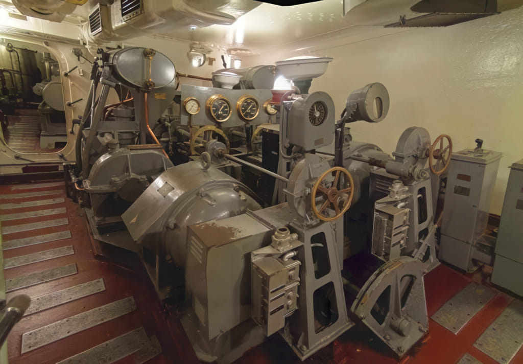 Recht interessant ist die Ruderanlage: Riesige Motoren mit Schiebestangen haben das Ruder bewegt: