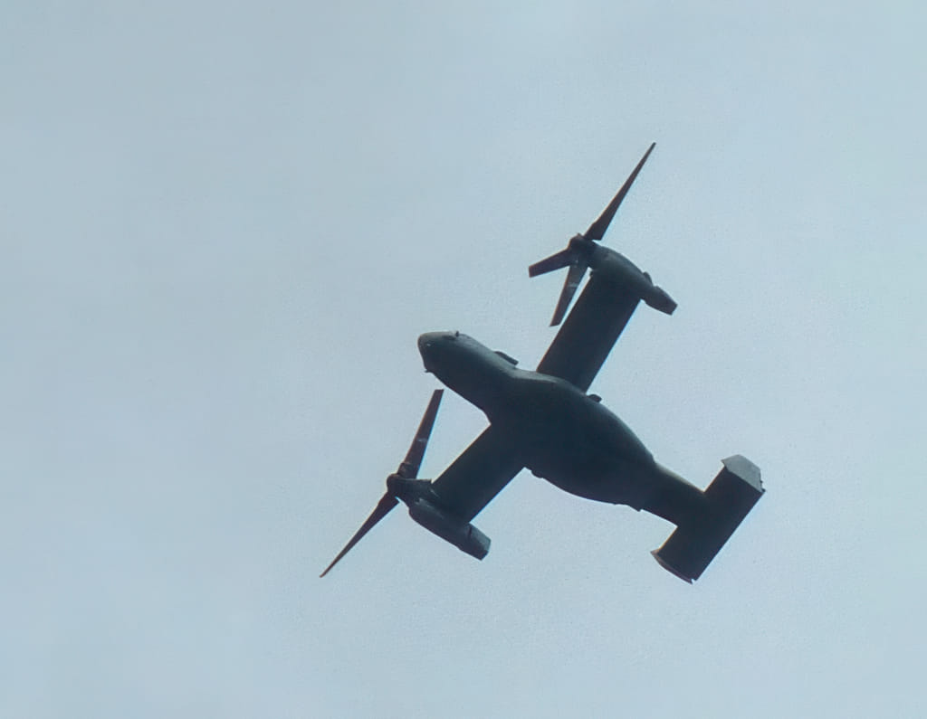 Am Parkplatz ist dann noch ein sehr seltsames Senkrechtstarterflugzeug über uns hinweggeflogen. Sowas muß man auch einmal in Action gesehen haben: