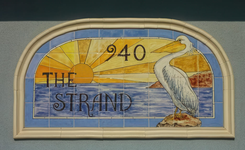 Egal, wir sind heute wieder am Strand gewesen. Das Wasser ist immer noch unbetretbar kalt, und der Pelikan bewacht das Straßenschild von The Strand 940; nur das Licht fällt besser: