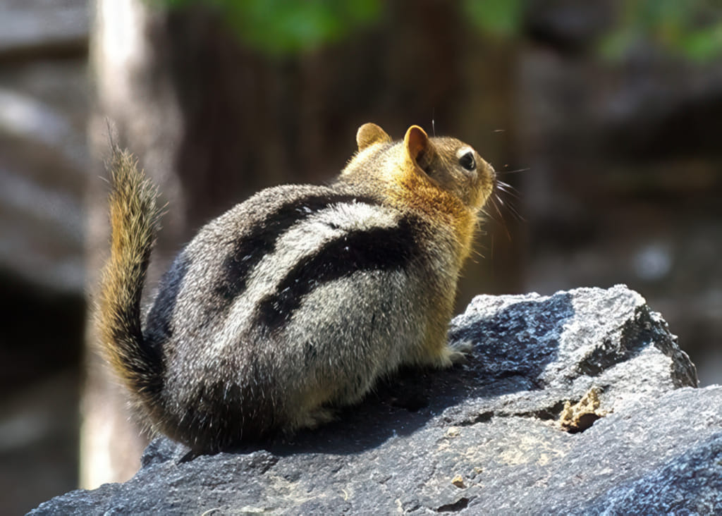 Leider war heute Samstag. Das ist in einem NP nie ein guter Tag, denn da ist die Hölle los. Neben den extrem vielen Touristen, die in riesigen Bussen herangekarrt wurden, kamen auch jede Menge Einheimische. Die zwei Busse voll Ostdeutscher waren aber nicht zu übersehen, denn wer steht sonst als Gruppe laut diskutierend einen ganzen riesigen Gehweg voll (den zum ‘heiligen Baum’) und läßt sich von noch so netten ‘excuse me’s der Einheimischen nicht um einen Millimeter wegbewegen. ‘Sollen die Amis doch schauen wie sie da hinkommen’, war wohl das Motto. Sowas macht immer einen super Eindruck. Die vielen Franzosen, Niederländer und Russen vielen da kaum mehr auf. Der Rückstau der Ostdeutschen hatte aber sein Gutes: Einige Zeit kam kein Mensch den Weg zum Baum durch und ein wirklich nettes 4-färbiges Eichhörnchen hat sich an den Weg getraut: