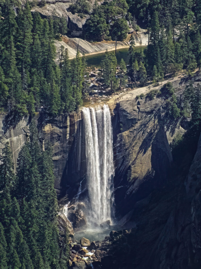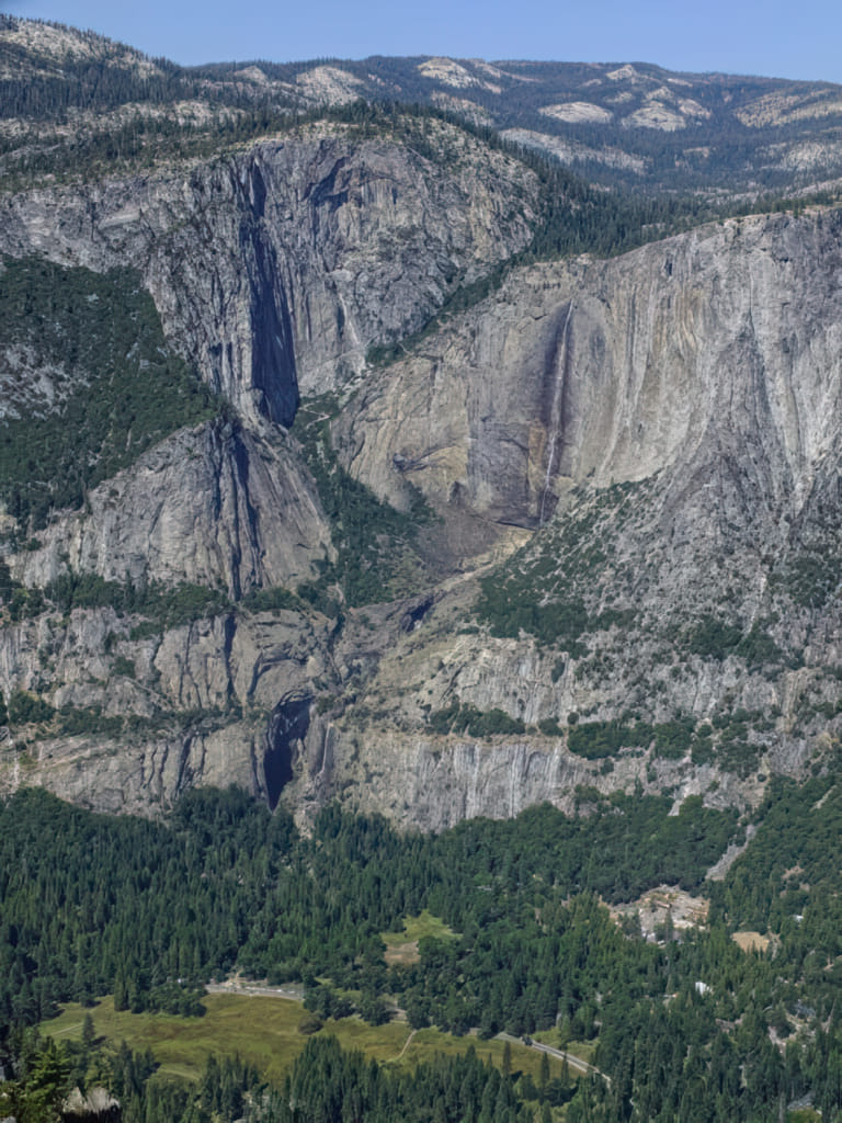 Klar gibt es auch Wasserfälle, die wie das Tal heißen: die upper und lower Yosemite Falls. Kann man von unten sehen oder aber ganz hervorragend vom Glacier Point:
