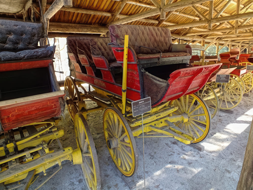 Das Frühstück mußte leider ausfallen, denn auf dem Campingplatz gibt es eine Wespenplage. Und die kann man sich kaum vorstellen. Gestern hatten wir Huhn aus dem Supermarkt. Kaum hatte das Huhn die frische Luft gesehen, waren die ersten Wespen da. Und kaum eine weitere Minute vergangen, da waren es sicher 100 von denen. So kann man ein Frühstück vergessen. Also ohne Frühstück gleich losgefahren und am ersten Picknickplatz im NP gefrühstückt. Das war ok. Gleich neben dem Picknickplatz befindet sich ein Reiterzentrum und eine Ausstellung historischer Kutschen: