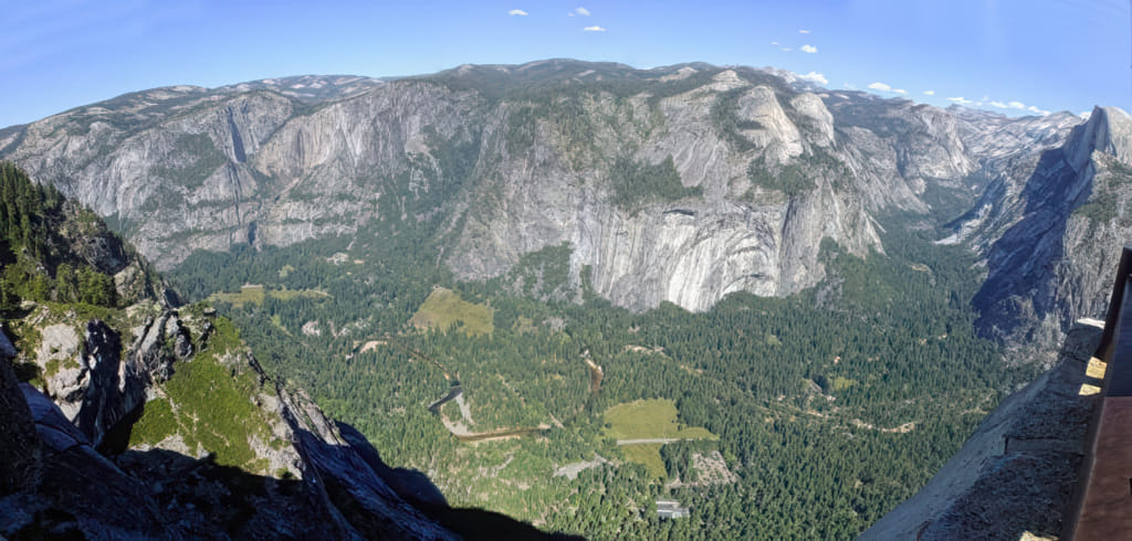 Gestärkt und voller Tatendrang ging es tiefer in den NP hinein und dann gleich rauf auf den Glacier Point. Auf dem weg dorthin der erste Zwischenstopp mit Panoramablick: