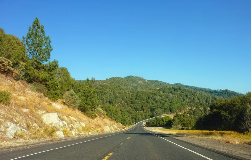 Ich bin von dort zum Zentrum gefahren, wollte dort einen Campingplatz für den nächsten Tag reservieren und bin gescheitert (sie reservieren nur 50%, der Rest ist first-come-first-serve). Also trollte ich mich wieder und habe zur Abwechslung die Straße nach Mariposa genommen (auf der bin ich noch nie gefahren). Die Strecke zurück zur 41er ist nichts für Radfahrer: ewig rauf und ewig runter und …. das geht so 24mi lang. Das könnten die längsten 24mi eines Radfahrerlebens werden: