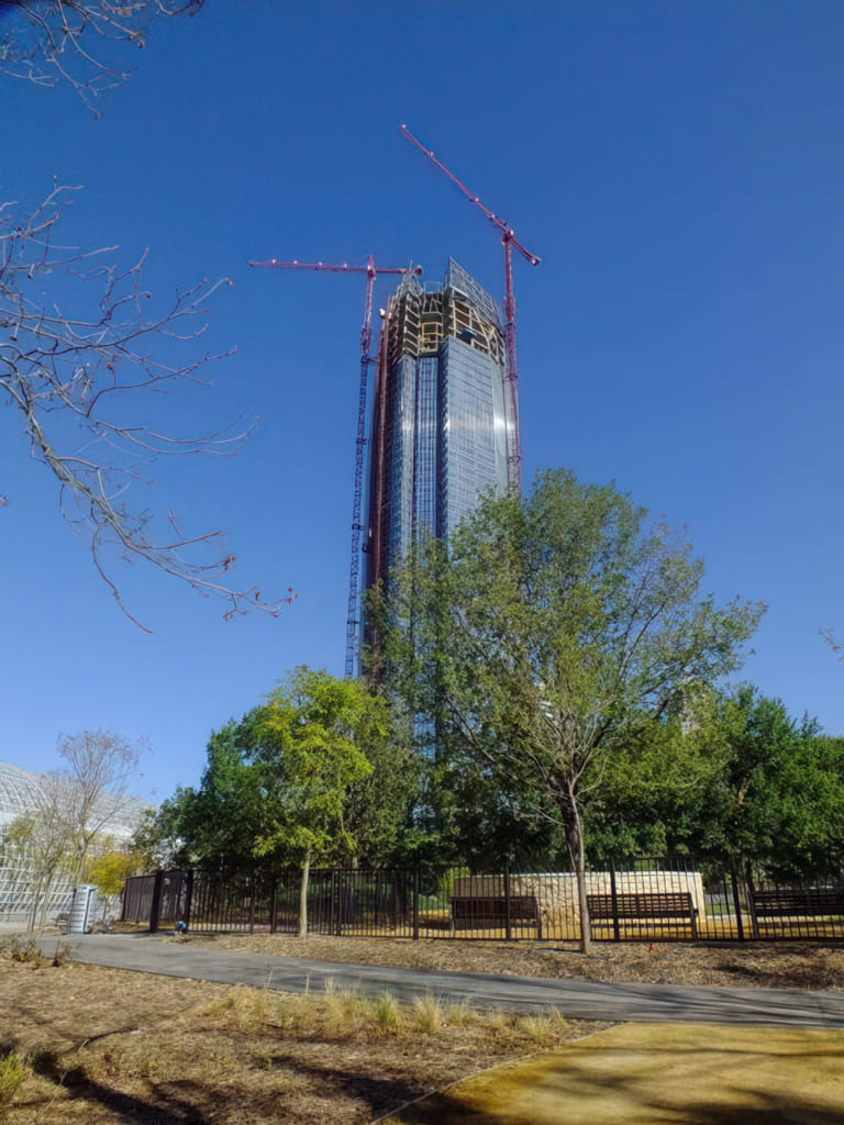 Aus dem Internet war leider nicht zu erfahren wie groß der Park ist. Man kann erfahren, daß es einen Gratisteil gibt und daß nur das Glashaus etwas kostet. Also waren wir gespannt, was uns da erwarten würde. Zunächst fiel auf, daß die ganze Innenstadt erneuert wird. Überall Baustellen, neue Wolkenkratzer werden gebaut, es scheint Geld investiert zu werden: