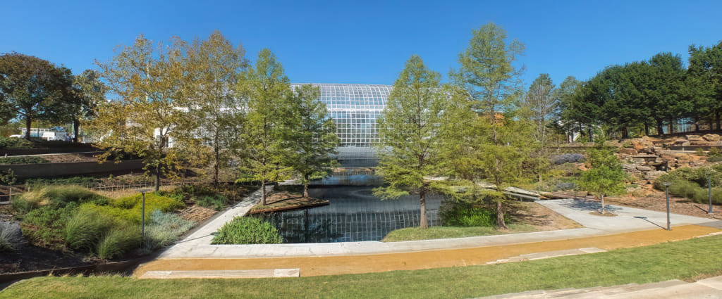 Also wenden wir uns dem kostenpflichten Glashaus zu. Es heißt nicht nur crystal bridge, es ist auch eine Brücke. Das Loch darunter ist zwar extra gegraben, aber hübsch ist es doch: