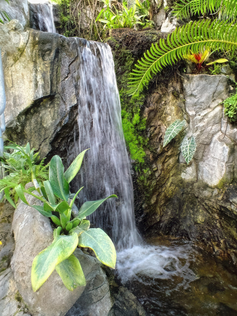Auf dem nassen Ende gibt es natürlich Orchideen und Wasserfälle: