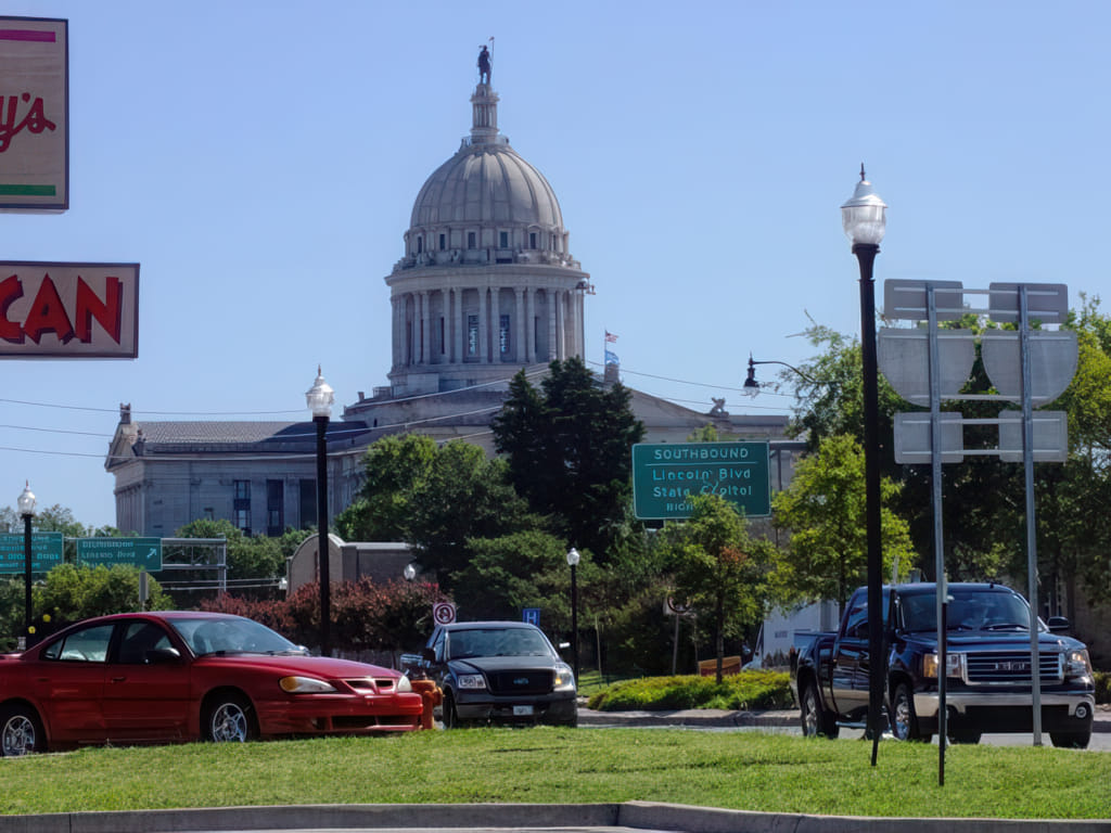 Das Ziel haben wir sehr bald erreicht, nur war an der angegebenen Stelle kein Walmart, sondern nur eine Tankstelle. Habe ich halt getankt. Beim Rausfahren konnte ich noch einen Blick auf das Capitol ergattern: