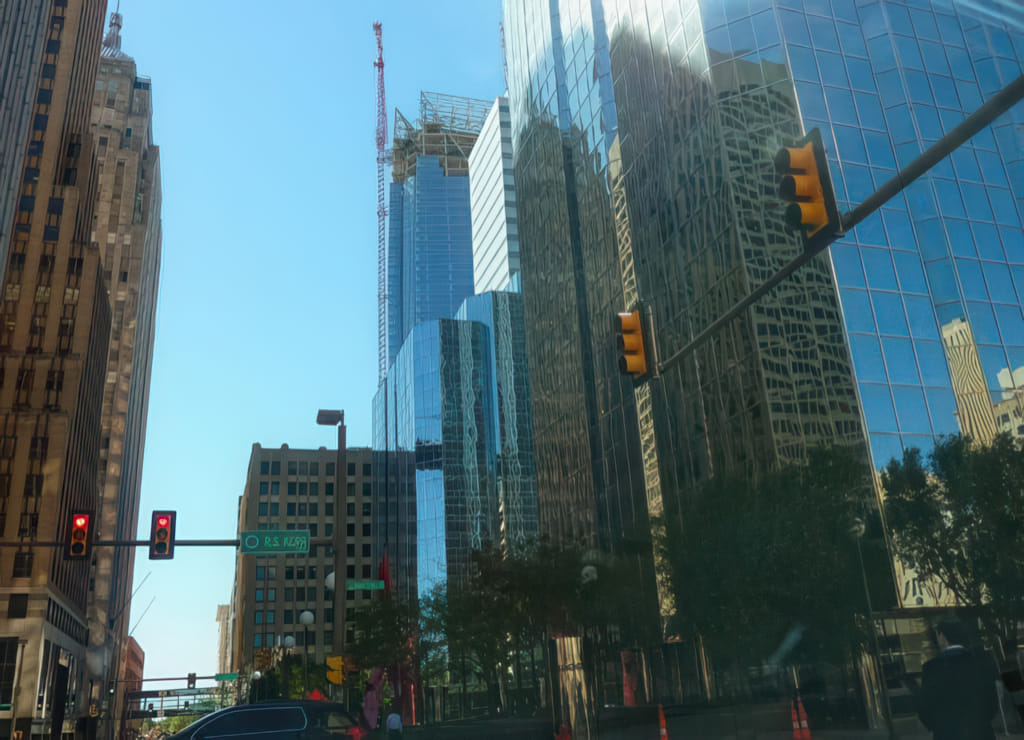 Das Denkmal zum Anschlag haben wir aus dem Auto gesehen, parken ist dort nur gegen $5 möglich und das war es mir nicht wert. Also habe ich meinen TomTom gebeten mich zum nächsten Walmart zu führen. Der Weg führte mitten durch die Hochhäuser: