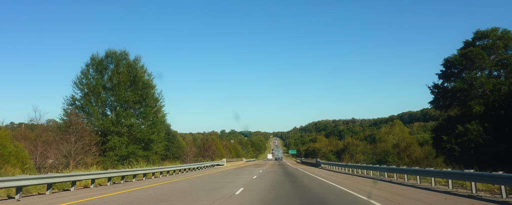 Bemerkt? Ja, die Wüste ist weg. Wir haben wieder die Grenze zum grünen Teil der USA durchbrochen. Die nächste Zeit sollten daher eher grünere Bilder dominieren! BTW, das Bild ist schon Arkansas.