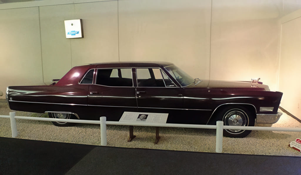 Autos können auch eine Erinnerung an ‘die guten Tage’ sein. Z.B. ist Elvis mit seiner Priscilla (noch nicht verheiratet) durch die Gegend gefahren. Dabei haben die beiden eine Ranch gesehen und haben sich sofort darin verliebt. Nur eine Woche später war die Ranch im Eigentum von Elvis. Um passend zu einer Ranch herumfahren zu können, hat er sich auch ein Cowboy Auto gekauft. Im darauf folgenden Jahr hat er Priscilla geheiratet und angeblich war das sein glücklichstes Jahr. Dann mußte er wegen der vielen Filme nach Hollywood ziehen und hat die Ranch verkauft, das Auto gegen einen passenderen Cadillac getauscht: