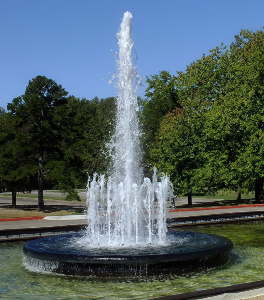 Das Museum der Autos habe ich bei meiner ersten Tour quer durch Amerika mehr zufällig entdeckt. Die Zeiten der Digitalkameras haben sich seitdem sehr gewandelt, daher war ich sehr gespannt, was man mit der neuen Technik fotographisch herausholen könnte. Wir sind in der Früh wie immer losgefahren und kamen Punkt 10 Uhr bei Museum an, dem Zeitpunkt des Öffnens. Der Springbrunnen erwartet uns schon sehnlich, denn wir waren auch gleich die ersten Besucher: