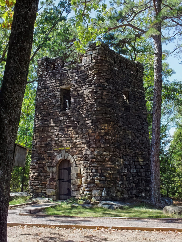 Hier liegt auch der Namensgeber begraben, wobei die Geschichte zeigt, das nicht alles so ist wie es scheint: Ein Franzose namens Chavet bat den König von Frankreich als Abenteurer in die neuen Gebiete (also die USA) reisen zu dürfen, und dort in seinem Namen Gebiet zu erkunden und Schätze nach Hause zu bringen; nur einen kleinen Teil davon wollte er behalten. Solche Angebote nimmt man als König an. Dummerweise war der Typ verlobt. Er wollte seine Verlobte aber nicht in Gefahr bringen und mitnehmen, sondern erst reich werden und dann heiraten. Sie wollte aber nicht so lange warten, hat sich als Junge verkleidet und ging als Kabinenjunge auf das gleiche Schiff wie ihr Geliebter. Der Kapitän nannte seinen Kabinenjunge Petite Jean. Sie kamen gut in die USA und fuhren den Arkansas River hinauf. Bis zu diesem Berg. Da lebten Indianer und die Abenteurer und Indianer kamen sich näher. Sie verbrachten den ganzen Sommer dort. Als es an die Abreise ging, erkrankte Petit Jean. In der Nacht vor dem Ablegen so schwer, daß er/sie ins Delirium fiel und die Geschichte auffiel. Am Morgen ging es Petit Jean schlecht, aber sie war bei Bewußtsein. Sie entschuldigte sich bei allen für die Maskerade und weil sie nicht glaubte die Rückreise zu überleben, wollte sie ihre letzten Tage am Berg verbringen. Die Indianer trugen sie hinauf und bei Sonnenuntergang verstarb sie. So kam der Berg und der SP zu seinem Namen. Das Grab ist noch heute zu sehen.