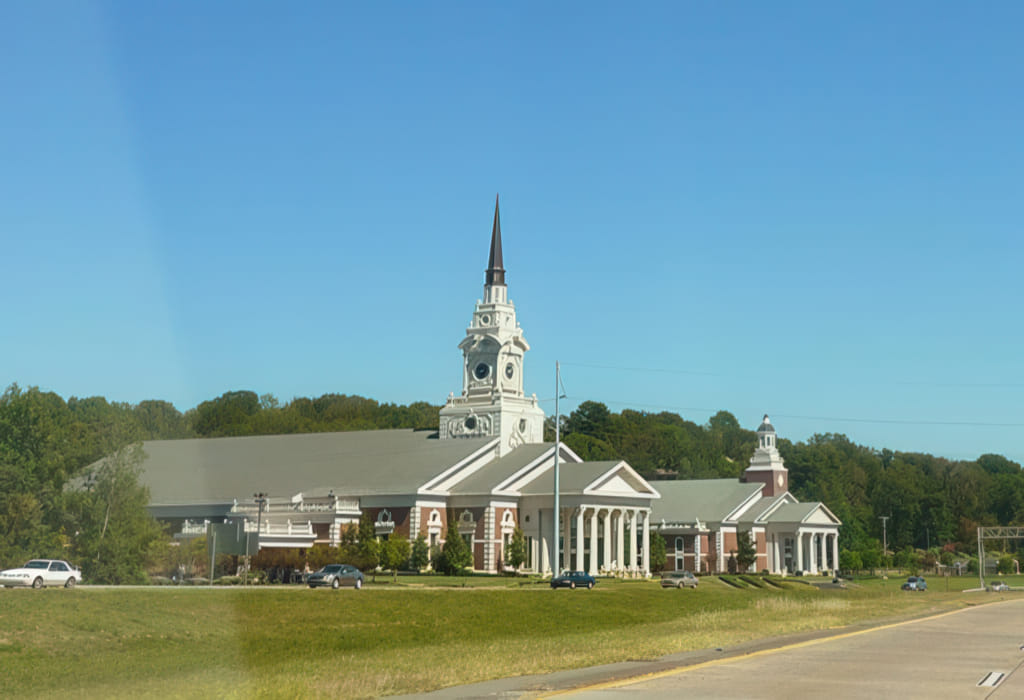Danach blieb mir nichts mehr übrig, als auf die I40 zu fahren und Meilen zu machen. Ein ruhiges Picknick ist aufgrund des Menschenandranges ausgefallen. Auf der Strecke ist es außer dem höllischen Verkehr an einem Samstag (haben die Leute am Wochenende nichts anderes zu tun?) nicht viel los. Dieses Gebäude taucht recht überraschend neben der Autobahn auf: