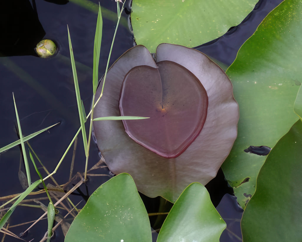 Die Wasserblumen waren noch nicht am Blühen, erste Knospen gab es aber schon zu sehen. Nett sind die Blätter in zwei Farben: