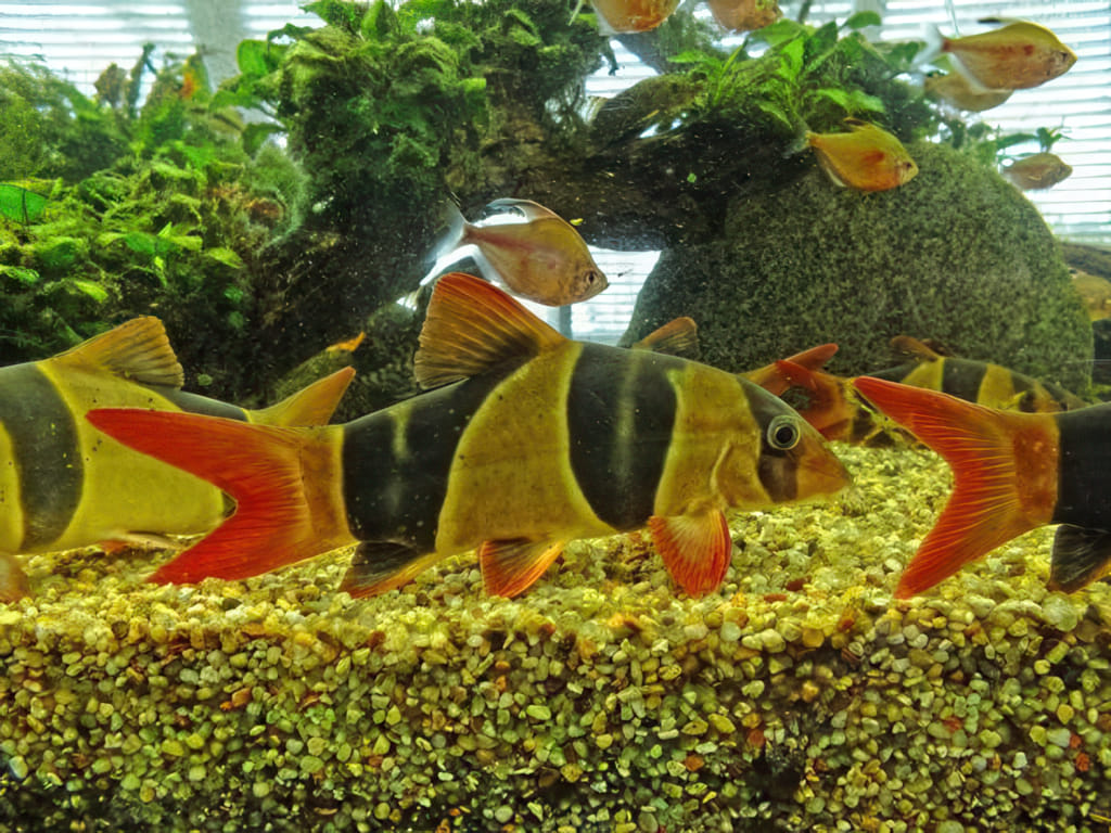 In einem Obergeschoß wird Werbung für Heimaquarien gemacht. Sehr hübsche Fische sind auch gleich zu sehen. Natürlich wird darauf Aufmerksam gemacht, daß man Zuchtfische nehmen soll und nicht gefangene Fische. Man sieht auch ein wenig über die Entwicklungsgeschichte der Aquarien: