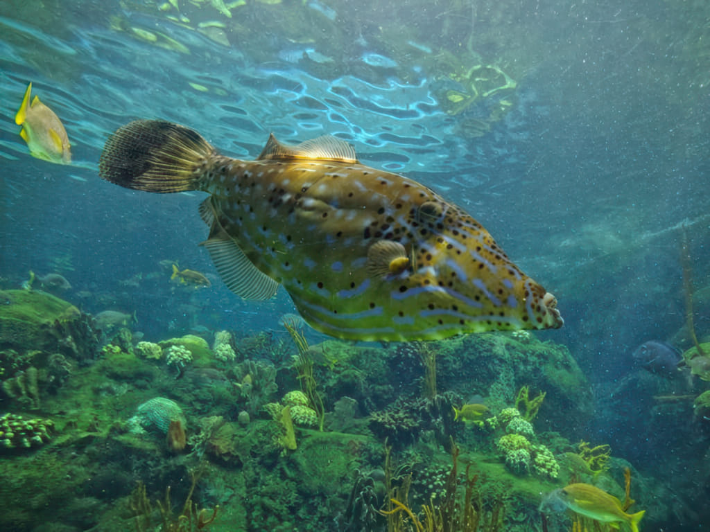 Wieder zurück an der Oberfläche gibt es Korallenriffe und deren Bewohner zu sehen: