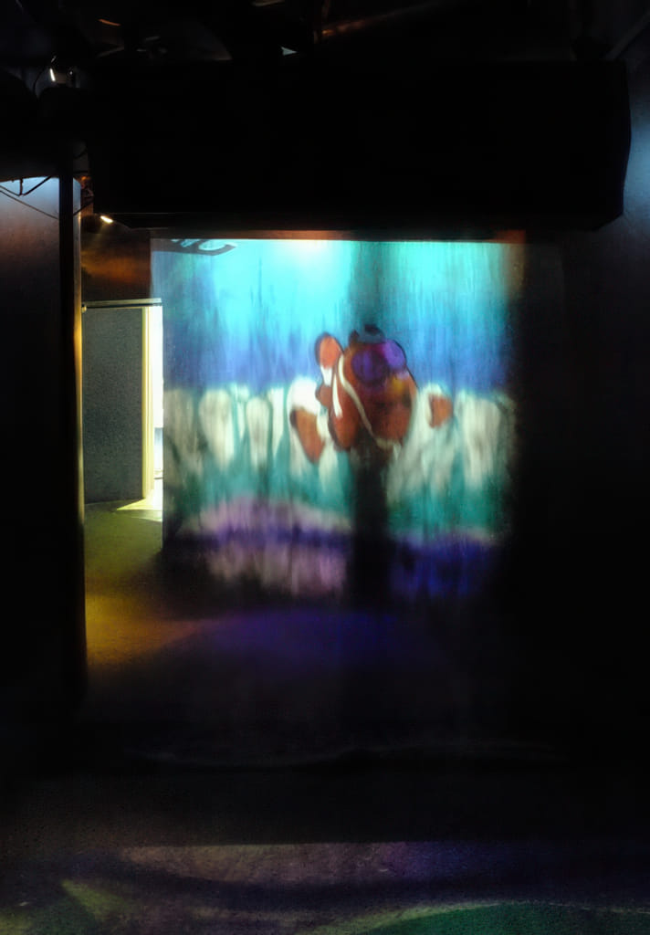 Für die Kinder werden verschiedene Informationen entsprechend bunt und nett aufbereitet. Die Idee mit dem Projektor auf Nebel ist wohl gut geklaut (habe ich zum ersten mal bei einer Disney Show gesehen). Macht sich aber auch in einem Aquarium gut: