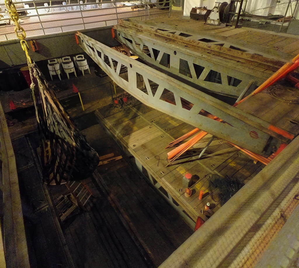 Und schon krabbelt man an Deck umher. Da gibt es, wie auf jedem Frachter, Kräne: