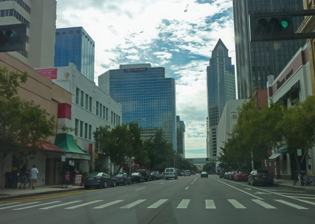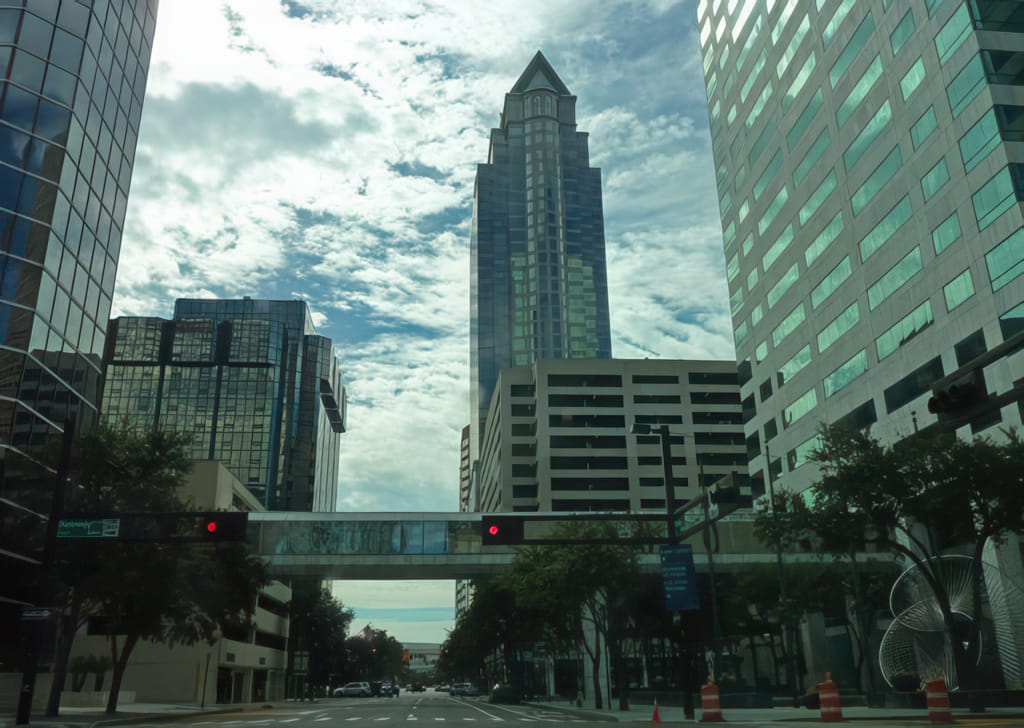 Vom Campingplatz bis in die Innenstadt von Tampa braucht man eine gute halbe Stunde. Das wahre Problem ist die Endanfahrt durch die Innenstadt. Es war zwar Wochenende, aber deswegen ist die Orientierung nicht einfacher. Mein Navi war brav, aber man fühlt sich wie eine kleine Maus zwischen den Hochhäusern: