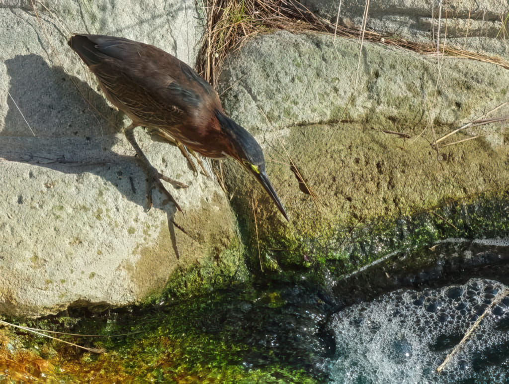Das Wasser ist wie immer türkis gefärbt. Das hindert einen Vogel aber nicht an der Jagd: