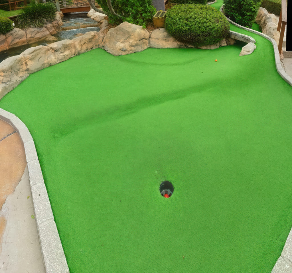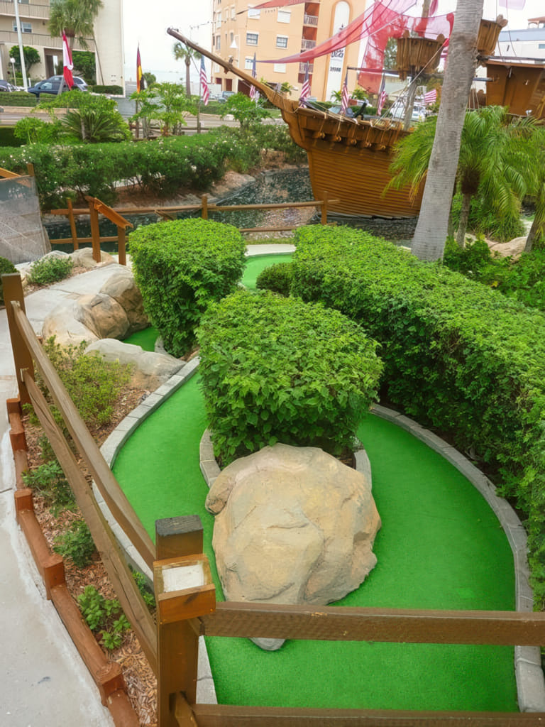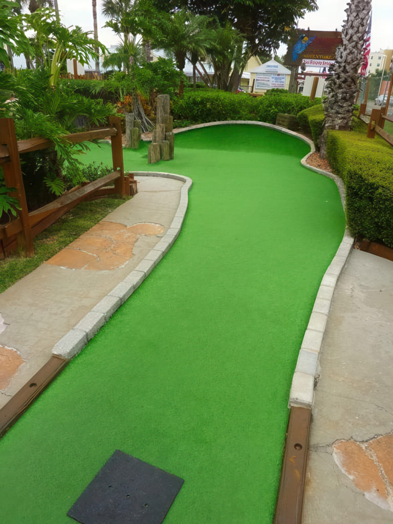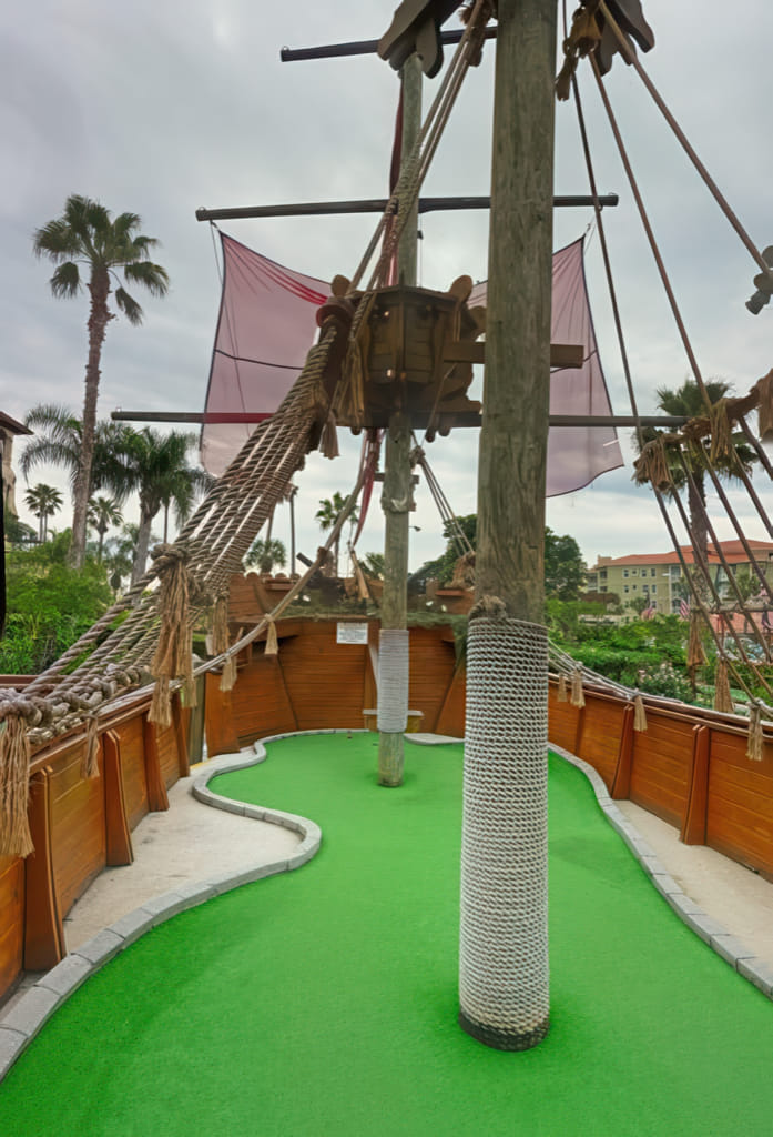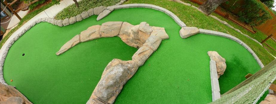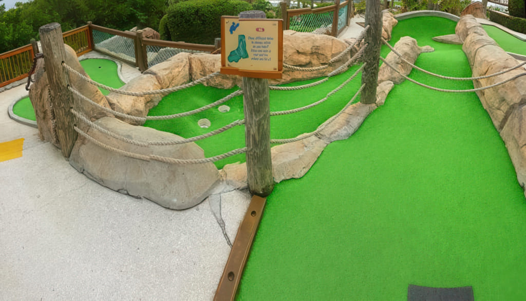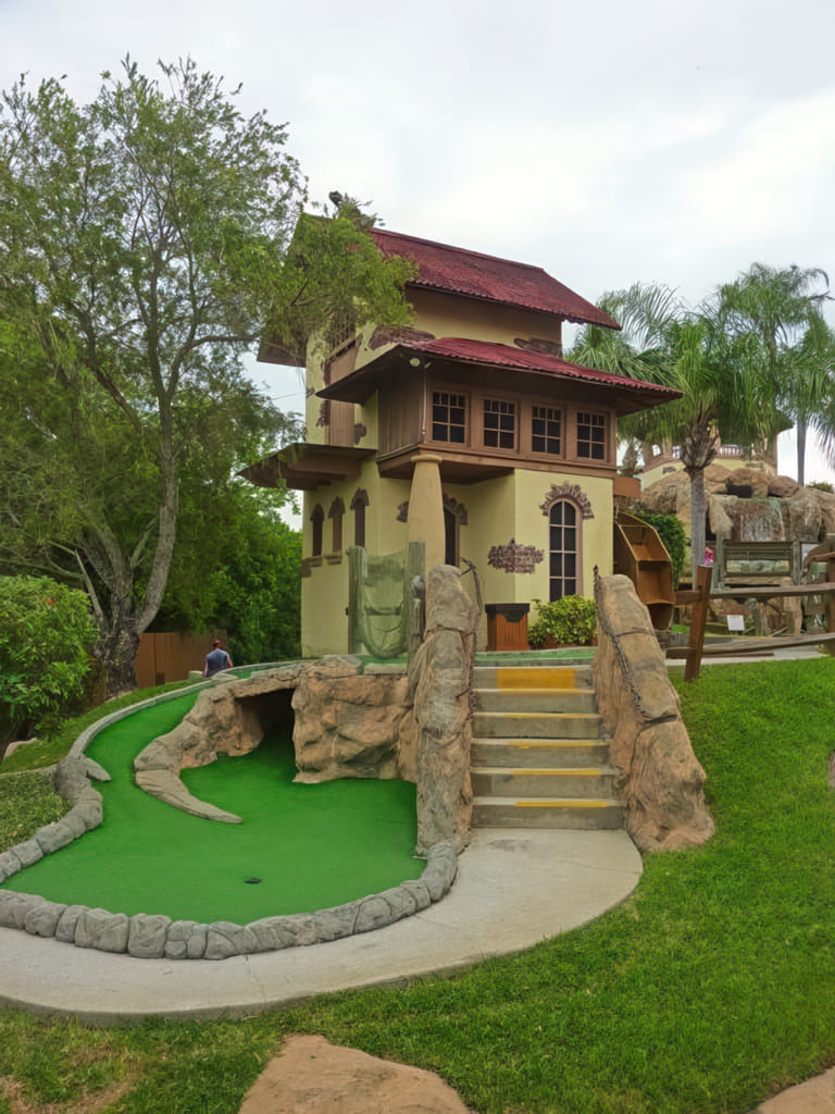 Der zweite Minigolfplatz liegt nur 10 Minuten vom Platz des Vortages entfernt. Gutscheine für den Platz hatten wir auch, also nichts wie hin. Daß es ziemlich bewölkt war, lies sich verschmerzen, denn es war trocken und warm. Gleich vorweg: Ich war von diesem Platz begeistert. War der Platz des Vortages echt gut, so ist der genial. Hier sind nicht nur die Dekorationen super, hier ist auch jedes Loch eine Herausforderung. Trotzdem bin ich mit 5 Hole in Ones vom Platz gegangen, ein paar andere sind nur um Zentimeter vorbeigegangen.